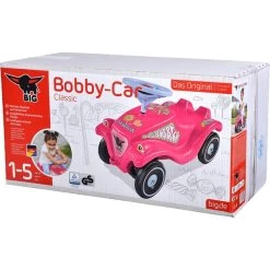 Fröhliches Himbeerpink und ein freches, witziges Süßigkeiten-Design in Trendfarben laden Kinder ab 12 Monaten zu Ausflügen draußen und drinnen ein. Doch nicht nur im Hinblick auf Design und Extras überzeugt das Fahrzeug aus der Bobby-Car-Linie. Das BIG-Bobby-Car Classic ist legendär in seiner Form und unschlagbar in Sachen Qualität. Die seit Jahrzehnten bewährte, unveränderte Karosserie des beliebten Kinderautos ist ergonomisch perfekt auf die Bedürfnisse der kleinen Fahrer und Fahrerinnen abgestimmt. Ein griffiges Sicherheitslenkrad mit mechanischer Hupe, vier robuste und abriebfeste Kunststoffräder, je eine Anhängerkupplung vorne und hinten sowie eine Kniemulde zum Fahren für größere Kinder ergänzen die spielstarke Ausstattung. Für einen kleinen Wendekreis sorgt die stufenlose Achsschenkellenkung des BIG-Bobby-Car. Die hervorragende Verarbeitungsqualität und der tiefliegende Schwerpunkt machen das BIG-Bobby-Car zum besonders sicheren Spielzeug.