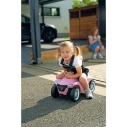 Mit dem Bobby-Car Neo präsentiert BIG das Facelift eines Klassikers. Das neue Design stellt das BIG-Logo zentral heraus, denn der bedruckte Kühlergrill wurde komplett neu gestaltet und auch die Flüsterreifen haben nun ein Büffel-Profil. Hinzu kommt die tolle Farbvariante in zartrosa mit türkisen Akzenten an Rädern und der Hupe. Das modernisierte Design bietet weiterhin eine ergonomische Sitzfläche mit Anti-Rutsch-Beschichtung und eine Sicherheits-Kniemulde. Das leichtgängige Vollschalen-Sicherheitslenkrad sorgt für einen optimalen Griff und eine angenehme Haptik. Das Bobby-Car Neo wird serienmäßig mit extra breiten, hochwertigen und abriebfesten Weichkunststoff-Reifen geliefert, die für guten Grip sorgen und flüsterleise rollen. Außerdem verfügt diese Version über 3-teilige geschlossene Felgen, die besonders leicht zu reinigen sind. Eine abnehmbare Abschleppvorrichtung vorne unter dem Kühlergrill und eine Anhängerkupplung am Heck ermöglichen das Ankoppeln von Bobby-Car-Zubehör sowie die Nutzung aller gängigen Bobby-Car-Anhänger.Art.-Nr.: 1788641