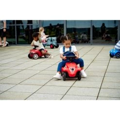 Facelift einer Legende – mit dem BIG-Bobby-Car Neo präsentiert BIG eine neue Generation seines roten Klassikers, der schon viele Jahrgänge von Kindern begleitet und begeistert hat. Das revolutionäre, moderne Design stellt das Wappentier, den BIG-Büffel, ganz besonders heraus. So ist beispielsweise der hochwertig bedruckte Kühlergrill in Form des Büffels gehalten und die breiten Flüsterreifen verfügen über ein einzigartiges Büffel-Profil. Der etwas dunklere, edle Farbton der roten Variante des NEO ist ebenfalls neu und symbolisiert ganz klassisch die neue Generation des BIG-Bobby-Cars. Das Chassis ist in neuer stylischer Form überarbeitet, die ergonomisch geformte Sitzfläche verfügt über eine Anti-Rutsch-Oberfläche. Das Kult-Auto verfügt nach wie vor über eine Sicherheits-Kniemulde und die Beinauflage. Die Rücklichter sind vormontierte Kunststoffteile in Form stilisierter Büffelhörner. Das leichtgängige Vollschalen-Sicherheitslenkrad sorgt für einen optimalen Griff und eine angenehme Haptik. Das BIG-Bobby-Car Neo wird serienmäßig mit extra breiten, hochwertigen und abriebfesten Weichkunststoff-Reifen geliefert, die für guten Grip sorgen und flüsterleise rollen. Des Weiteren verfügt die neue Version des kultigen Rutschautos über 3-teilige geschlossene Felgen, die besonders leicht zu reinigen sind. Das BIG-Bobby-Car Neo ist revolutionär in seiner Form und unschlagbar in Sachen Qualität. Hergestellt wird es aus umweltfreundlichem und strapazierfähigem Kunststoff im modernen BIG-Werk in Deutschland.Art.-Nr.: 1529357