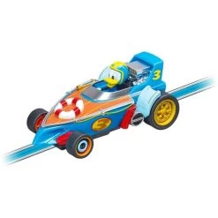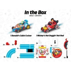 Mit dieser Carrera-Bahn für Kinder ab drei Jahren kommen Mickey und Donald zum Rennen fahren ins Kinderzimmer! „Mickey’s Fun Race“ ist ein Rennbahn-Set aus der Serier FIRST und bietet eine 2,4 Meter lange, blaue Bahn. Die Bahn fällt mit ihren Mickey Maus-Deko-Elementen und originalgetreuen Details auf. Dei Bahnen der Serie FIRST-Set sind dank Batteriebetrieb und einem einfachen Stecksystem auch gut für unterwegs geeignet.Art.-Nr.: 100025188