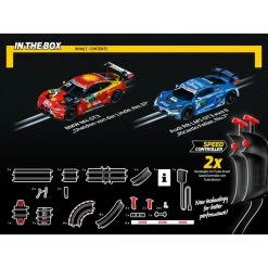 Zwei Größen des modernen Rennsports stehen in diesem Rennbahn-Set aus der Carrera-Serie GO!!! am Start. Da ist auf der einen Seite der BMW M4 GT3 von DTM-Gewinner Sheldon van der Linde vom Team Schubert Motorsport. Sein Gegner ist Ricardo Feller im Audi R8 LMS GT3 evo II vom Team Abt Sportsline. Gesteuert werden die Slotcars im Maßstab 1:43 durch kabelgebundene Handregler. Mit Looping, Fly Over und Rundenzähler liefert das Set „Power Lap“ spektakuläres Rennbahn-Feeling.Art.-Nr.: 100025196