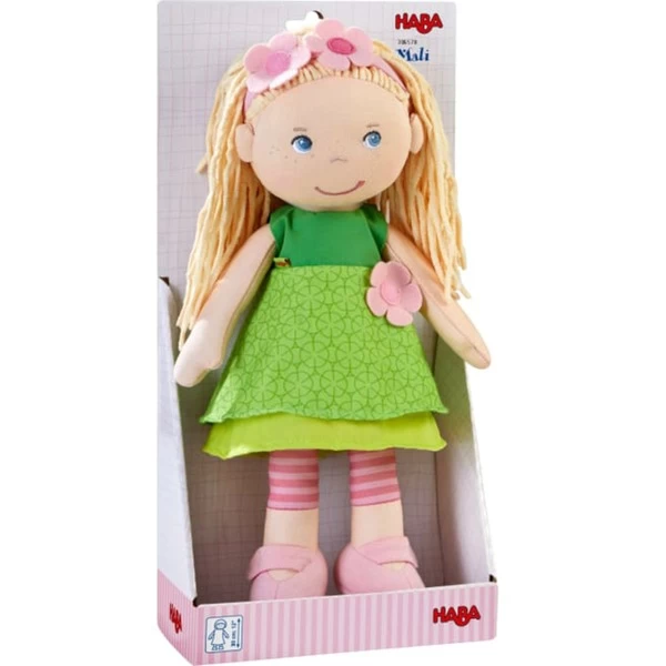Puppen von HABA sind tolle Gefährten für Kinder. Sie haben fröhliche Gesichter, weiche, wattierte Körper und kuschelige Haare. Spielen, kuscheln, trösten oder Abenteuer erleben – mit diesen Puppen ist vieles möglich. Bei der großen Auswahl an Charakteren ist für jedes Kind der passende Spielgefährte dabei. Mali trägt ein süßes grünes Kleid und rosa Blümchen in ihrem blonden Haar. Praktisch: Ihre Kleidung ist dank Klettverschluss ruckzuck aus- und ebenso schnell wieder angezogen.Art.-Nr.: 1913234
