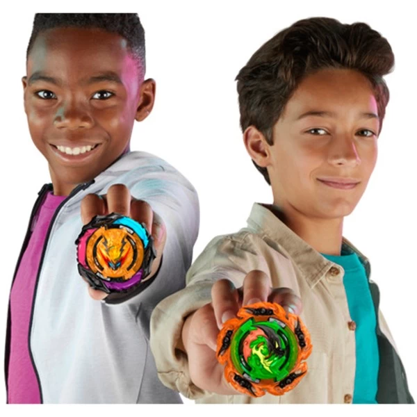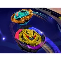 Mit dem Light Ignite Battle Set wird Beyblade Burst QuadStrike zu einem Wettkampf-Erlebnis mit bunten Lichteffekten. Das Set enthält eine Light Ignite Beystadium-Arena mit Leuchteffekt, zwei rechts-/linksdrehende Starter, zwei Extraspitzen und zwei rechtsdrehende QuadStrike-Kreisel: Den Destined Evo-X Belfyre B8 G05 QS03 TS23-Q A14 (Angriff/Ausdauer-Typ) und den Ruin Pandemonium P8 G07 QD11 TA23-Q B12 (Balance/Angriffs-Typ). Durch den Glow-Effekt der Arena ändert sich die farbliche Erscheinung der Kreisel, während sie in der Hauptzone der Arena umherwirbeln. Art.-Nr.: 100022838