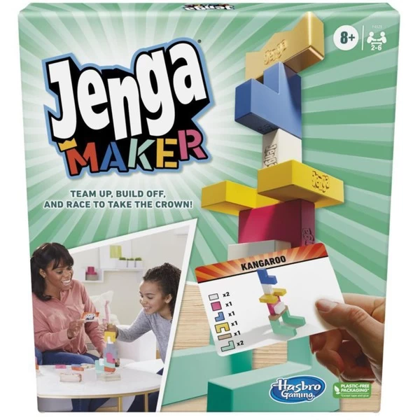 Bildet Teams, beginnt mit dem Bau und liefert euch ein Rennen um die Krone. Das Jenga Maker Spiel ist eine spannende, lustige Edition des klassischen Jenga Spiels. Die Spieler bilden Teams und versuchen, vor den Anderen ihr Jenga Objekt mit den Jenga Hartholz-Klötzen fertigzustellen. Ein Teammitglied beschreibt das auf der Karte abgebildete Bauwerk. Die Anderen versuchen, dieses anhand der Beschreibung so schnell wie möglich zu vollenden und zu krönen. Aufgepasst! Wenn ein Team das Bauwerk falsch baut oder das Objekt einstürzt, muss es von vorne beginnen. Das erste Team, das 3 Bauwerke fertigstellt und krönt, hat gewonnen. Es ist ein lustiges, anspruchsvolles Spiel, bei dem Freunde, Fähigkeiten, Spannung, Spaß und etwas Glück kombiniert werden. Auf der Suche nach einem tollen Spiel für einen Familien-Spieleabend? Die Bauwerke für Anfänger und Fortgeschrittene machen Jenga Maker zu einem idealen Spiel für Erwachsene und Kinder ab 8 Jahren.Art.-Nr.: 1824970