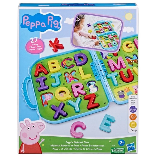 P wie Peppa, L wie Luzie Locke! Dieser Koffer voll mit bunten Buchstaben erleichtert Kindern den Einstieg in die Welt der Buchstaben und Wörter. Und dabei helfen Peppa Wutz und ihre Freunde ganz kräftig mit: Unter jedem Buchstaben befindet sich ein Bild aus Peppas Welt, das die Zuordnung von Buchstaben und Geräuschen erleichtert. So lernen sie, Dinge zu benennen und sogar einfache Wörter zu buchstabieren. Alles wird in einer praktischen Tragetasche geliefert, so dass dieses Set immer mit dabei sein kann. Art.-Nr.: 1894069