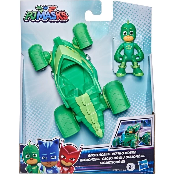 Höchste Zeit, ein Held zu sein! Mit dem PJ Masks Geckomobil können Kinder ab drei Jahren zu Hilfe eilen. Der Eulengleiter kommt im supercoolen Design, das von der beliebten Serie PJ Masks – Pyjamahelden inspiriert ist und enthält eine bewegliche Gecko Action-Figur, die in der offenen Fahrerkabine sitzen kann. Die Gecko-Figur ist mit separat erhältlichen Spielsets von Hasbro kompatibel, die mit der Hero-ID ausgestattet sind: Diese können die die Figur erkennen und mit Lichtern und Geräuschen auf sie reagieren.Art.-Nr.: 1894063