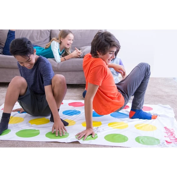 Das bekannte Verrenkungsspiel mit Verknotungsgefahr in neuem Design. Die Drehscheibe gibt wie gewohnt die Position auf der Matte vor. Aber Achtung, zwei neue Elemente auf der Drehscheibe sorgen für einen noch größeren Verknotungsspaß. Der Spieler, der mit den Händen oder Füßen den Kontakt zur Matte verliert, scheidet aus. Art.-Nr.: 1189549