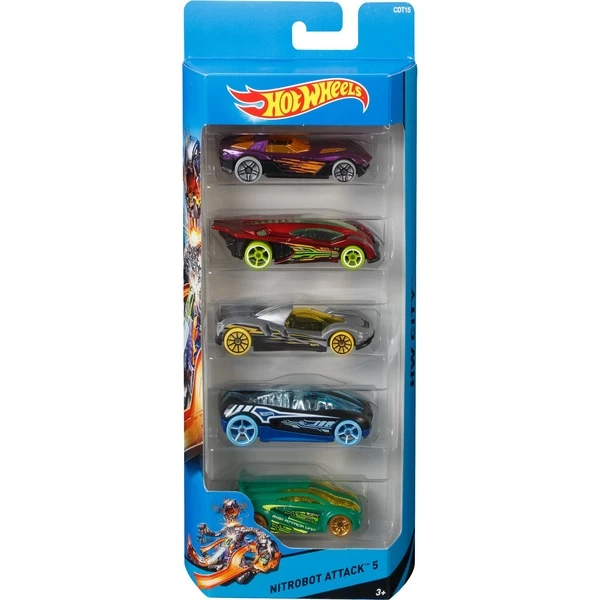 | Inhalt/Ausstattung | Jede Packung enthält fünf 1:64 Hot Wheels Fahrzeuge aus coolen Themenbereichen | ||