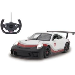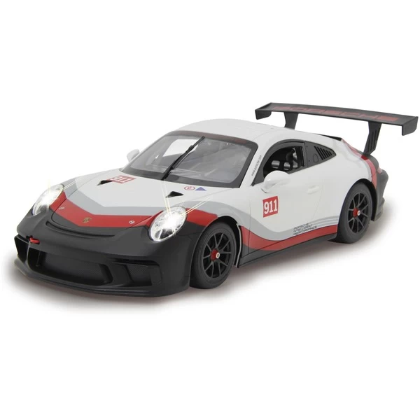 Wer hat nicht schon davon geträumt, einmal einen schönen sportlichen Wagen zu bewegen? Mit den offiziell lizenzierten Deluxe Car Modellen von Jamara kann man sich diesen Traum erfüllen und sich den sportlichen Porsche 911 GT3 Cup im Maßstab 1:14 ins Wohnzimmer holen. Mit LED-Licht und nachgebildeten Details, die mit viel Liebe umgesetzt wurden, überzeugen die Fernlenkfahrzeuge auch durch die hochwertige Verarbeitung und den detailgetreuen Innenraum. Im Lieferumfang ist eine 2-Kanal-27-MHz-Fernsteuerung und eine Anleitung enthalten, eine Montage ist nicht erforderlich.Art.-Nr.: 1553068