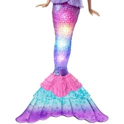 Mit der Barbie Malibu Zauberlicht Meerjungfrau mit magischer wasseraktivierter Leuchtfunktion können Kinder in fantasievolle Geschichten eintauchen! Einfach die Barbie Meerjungfrau in Wasser eintauchen, und schon erstrahlt ihre Meerjungfrauen-Schwanzflosse in einer von vier farbenfrohen Lichtershows. Die Barbie Malibu Zauberlicht Meerjungfrau sorgt nicht nur in der Badewanne oder im Pool für jede Menge Spaß, sondern auch auf dem Trockenen. Durch Betätigung des sternenförmigen Knopfs auf dem Oberteil der Barbie-Puppe kann die Lichtershow auch ganz ohne Wasser gestartet werden. Abgerundet wird der farbenfrohe Look der Barbie Meerjungfrau durch Regenbogenflossen, pinke Strähnen im Haar und ein Prinzessinnendiadem. Die Barbie Malibu Zauberlicht Meerjungfrau ist perfekt für die Badezeit und das Spielen im Wasser geeignet (Aufsicht von Erwachsenen empfohlen) und ein tolles Geschenk für Kinder von 3 bis 7 Jahren.Art.-Nr.: 1806403