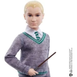 Diese Puppe ist dem Vorbild aus den Harry-Potter-Filmen detailgetrau nachempfunden. Draco trägt seine Hogwarts-Uniform mit grün gestreiftem Pullunder und abnehmbarem Slytherin-Umhang und hat auch seinen Zauberstab dabei. Die Figur ist für vielfältige Spielmöglichkeiten an elf Gelenken beweglich – eine magische Ergänzung für jede Harry Potter-Sammlung. Sie ist etwa 26 cm hoch.Art.-Nr.: 1888531