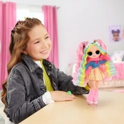 Die Puppen der Reihe L.O.L. Surprise OMG Sunshine Makeover kommen mit einem ganz speziellen Effekt: Kleidung und Haare wechseln in der Sonne die Farbe – und kehren im Innenraum wieder in den ursprünglichen Zustand zurück. Der Farbwechsel kann dabei beliebig oft wiederholt werden. Bubblegum DJ weiß genau, wie Farben gemischt werden müssen: Sie liebt es, aus verschiedensten Einflüssen etwas neues zu erschaffen. Die Puppe hat bewegliche Gliedmaßen. Art.-Nr.: 1912449