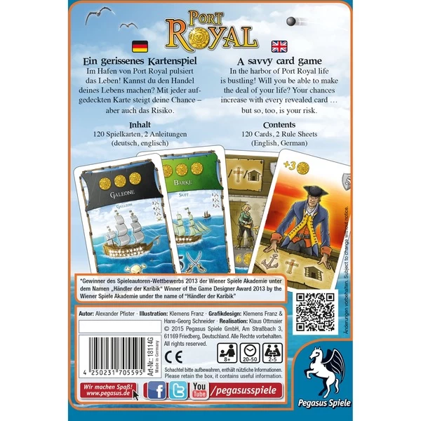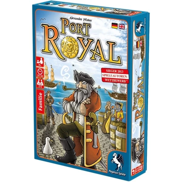 Die Karibik im goldenen Zeitalter der Piraterie: Große Gefahren lauern in diesen Gewässern. Doch die Aussicht auf unermesslichen Reichtum rechtfertigt so manches Risiko. Die Spieler begeben sich in Port Royal auf die Suche nach einer schlagkräftigen Crew und versuchen gierige Freibeuter zu meiden. Nur wer wagt, wird seinen Einfluss steigern und schließlich einem königlichen Expeditionsaufruf folgen können. Aber wer zu viel riskiert, läuft Gefahr, alles zu verlieren. Port Royal ist ein mehrfach ausgezeichnetes, schnelles Kartenspiel mit der vollen Breitseite Piraten-Flair. Dank der einfachen Regel können die Spieler sofort in See stechen und bei der Erkundung fremder Gewässer ihren Mut beweisen.Art.-Nr.: 1346924