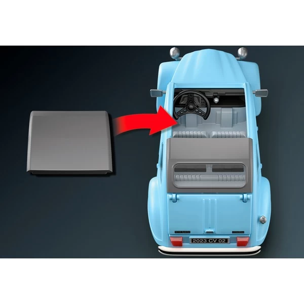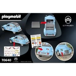 Wer kennt ihn nicht, den Citroën 2CV besser bekannt als „Ente“. Jetzt gibt es das ikonische Kultauto auch als PLAYMOBIL-Modell mit vielen authentischen Details. Kinder und Erwachsene werden dieses einzigartige Miniaturfahrzeug lieben. Als Vorbild für dieses PLAYMOBIL-Fahrzeug diente der legendäre Citroën 2CV der 1948 in Paris erstmals der Öffentlichkeit präsentiert wurde. In den folgenden Jahrzehnten entwickelte sich der Citroën 2CV zu einem der bekanntesten Automodelle Frankreichs. Das PLAYMOBIL-Auto bietet Platz für vier Fahrgäste und steckt voller charmanter Facetten wie einem originalgetreuen Interieur, einer Heckklappe zum Öffnen, charakteristischen Frontscheinwerfern und einem abnehmbaren Verdeck. Die Scheinwerfer können zwischen durchsichtig und gelb gewechselt werden. Auf dem beiliegenden Etikettenbogen sind vier verschiedene Länderkennzeichen enthalten. Außerdem gibt es eine Auswahl fröhlicher Stickermotive, mit denen die Ente ganz individuell verziert werden kann. Der Citroën 2CV von PLAYMOBIL präsentiert einzigartiges französisches Autodesign mit Kultcharakter zum Spielen, Sammeln und Ausstellen.