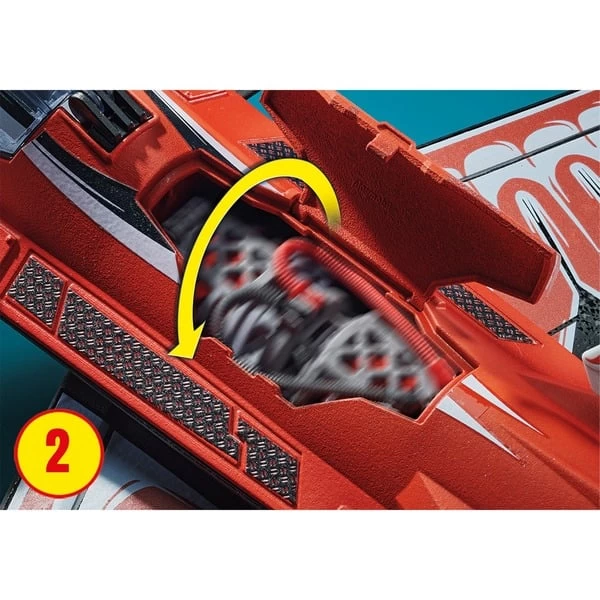 | Inhalt/Ausstattung | Das Spielset enthält einen PLAYMOBIL-Piloten, einen Düsenjet mit Aufziehmotor, zwei große Pylonen, zwei Anzeigetafeln, einen Pilotenhelm und weitere tolle Extras. | ||