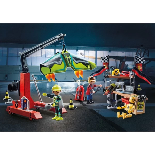 | Weitere Information | In der Servicestation werden die Flugobjekte und deren Einzelteile gewartet und repariert. Incl. mobilen Kran mit Seilwinde und Wingsuit. Der Reparaturservice kann ideal mit den Spielsets 70831 Air Stuntshow Doppeldecker „Phönix“ und 70832 Air Stuntshow Düsenjet „Eagle“ kombiniert werden. | ||