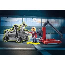 | Inhalt/Ausstattung | Das Set enthält eine PLAYMOBIL-Figur, ein Reparaturfahrzeug, eine Schubstange, ein Benzinfass, einen Feuerlöscher und weitere Extras. | ||