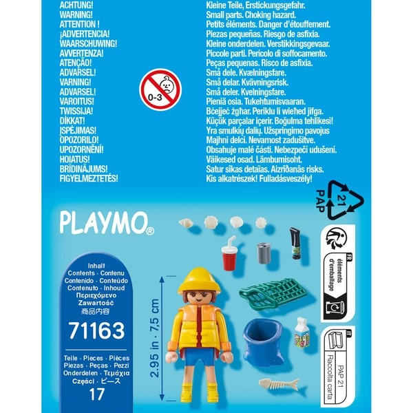 Die PLAYMOBIL-Figuren aus der Serie specialPlus kommen mit einem Plus an Zubehör – und damit auch mit besonders viel Spielspaß! Die Umweltschützerin ist immer unterwegs im Auftrag das Naturschutzes – und daher auch bestens gegen schlechtes Wetter geschützt. Mit ihrem großen Beutel sammelt sie Müll und führt ihn der ordnungsgemäßen Verwertung zu.Art.-Nr.: 1888902