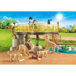 Im Zoo können nicht nur heimische, sondern auch exotische Tiere aus nächster Nähe beobachtet werden. In diesem weitläufigen Areal sind Löwen untergebracht. Vom erhöhten Beobachtungssteg aus haben alle Besucher einen ausgezeichneten Blick auf die wilden Tiere. Für besonders nahe Einblicke kann das drehbare Fernrohr genutzt werden. Gerade ist Fütterungszeit und die Löwenfamilie macht sich über ein paar Fleischkeulen her. Ein liebevoll gestaltetes Spielset für tolle Tierabenteuer. Das Set enthält zwei PLAYMOBIL-Figuren, ein Löwenpärchen mit zwei Babys, ein Krokodilbaby, einen Beobachtungspfad mit Fernrohr und weitere Extras. Die enthaltenen Abgrenzungselemente können flexibel aufgestellt werden. Das Spielset eignet sich ideal zur Ergänzung des großen Erlebnis-Zoos 71190.Art.-Nr.: 1849627