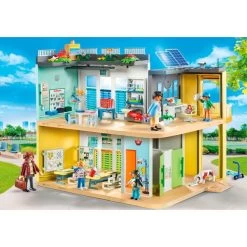 | Inhalt/Ausstattung | Figuren: 1 Mann, 1 Frau, 3 Kinder. Tiere: 1 Hund. Zubehör: 1 Feuerlöscher, 2 Handtaschen, 1 Koffer, 1 Roller, 1 Getränkeflasche, 4 Rucksäcke, 1 Schwamm, 3 Bücher, 1 Zirkel, 4 Plättchen, 5 Stifte, 1 Essensbox, 1 Eimer, 3 Tische, 5 Stühle, 1 Papierflieger, 1 Sitzbank, 1 Fahrradständer, 4 Blumen, 1 Laptop, 1 Tasse, 1 Teller, 1 Box, 1 Halbtisch, 1 Lupe, 1 Schere, 1 Mikroskop, 2 Blumen Strauche, 1 Leiter, 2 Toiletten. | ||