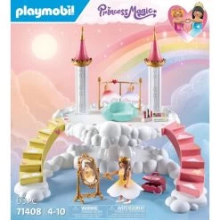 | Inhalt/Ausstattung | Figuren: 1 Regenbogenprinzessin, 1 BabyZubehör: 1 Ankleidewolke mit zwei Treppen, 1 Diadem, 1 Unterrock, 3 Wolkenröckchen, 3 Clips, 1 Kleiderständer, 2 Kleiderbügel, 1 Standspiegel, 1 Wolkensessel, 1 Schatztruhe, 1 Schminkset (4-teilig), 1 Kette, 1 Dekoherz, 1 Stickerbogen mit Stickern zum Dekorieren | ||