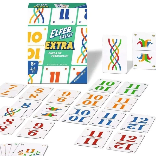 Extra Karten, extra Punkte, extra Spielspaß – das seit Generationen beliebte Kartenspiel bietet in dieser Version extra Möglichkeiten! Elfer raus! besticht durch seine einfachen Regeln und hohen Spielspaß. Werden die die zusätzlichen Brückenkarten und Joker gezielt eingesetzt, lassen sich dadurch Bonuspunkte gewinnen. Der unterhaltsame Klassiker kommt jetzt mit einem Extra an Spannung und Abwechslung – denn zum Schluss gewinnt, wer die meisten Punkte hat.Art.-Nr.: 1894580