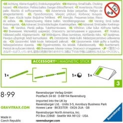 GraviTrax – das innovative Baukastensystem für anspruchsvolle Kugelbahnen. Aus einer Vielzahl an verschiedenen Bausteinen und Schienen lassen sich bei geschickter Nutzung der physikalischen Gesetze aktionsreiche Streckenverläufe planen, ausprobieren und realisieren. Mit den zahlreichen Erweiterungs-Sets wird das freie Bauen und Konstruieren des innovativen Bausystems GraviTrax jedes Mal aufs Neue noch interessanter und spannender! Mehr Möglichkeiten – mehr Spaß! In diesem Set ist ein spannendes Zubehörteil zur Nutzung im GraviTrax-Universum enthalten: Mit dem Magnetic Stick können Kugeln auch in schwierigen Stellen der Kugelbahn erreicht und aufgenommen werden. Durch die magnetische Spitze des Accessory Magnetic Stick werden die silbernen und bunten GraviTrax Kugeln wie von Zauberhand angezogen. Vor dem ersten Gebrauch kann er sehr leicht zusammengesteckt werden. Zusätzlich befindet sich in dem Set eine silberne Kugel. Art.-Nr.: 1913202