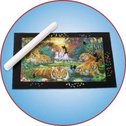 Mit diesem praktische Puzzle-Aufbewahrungssystem lassen sich angefangene oder fertige Puzzle platzsparend aufbewahren oder sicher transportieren. Roll your Puzzle XXXL besteht aus einer Filzunterlage, an der die Puzzleteile haften und einer aufblasbaren Rolle. Puzzle bis zu 3000 Teilen lassen sich somit aufrollen und benötigen dadurch nur noch wenig Platz.Art.-Nr.: 1356821