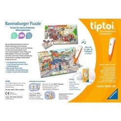 Bei diesem tiptoi-Puzzle ist der Puzzlespaß nur der Anfang: Sind die zwei Puzzles mit jeweils 12 Teilen zusammengesetzt, geht es mit Rettungsdienst, Feuerwehr oder Polizei zum Einsatz. Verschiedene Szenen können mit Hilfe von tiptoi erkundet werden – dabei erfahren Kinder ab 3 Jahren Spannendes über Einsatzfahrzeuge und Einsatzkräfte.Art.-Nr.: 1876139
