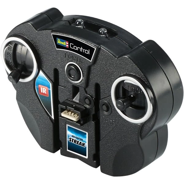 Der Glow in the Dark Heli „STREAK“ ist ein kleiner Indoor-Helikopter mit dem leuchtenden Extra: Durch eine Effektlackierung und integrierte LEDs leuchtet er im Dunkeln. Mit der 2-Kanal IR-Steuerung muss sich der Pilot nur auf die Links/Rechts-Steuerung konzentrierten, denn vorwärts fliegt der Heli automatisch. Dabei stabilisieren der elektronische Gyro und das Koaxial-Rotorsystem das Modell zusätzlich. Das Aufladen des Hubschraubers erfolgt ganz bequem über die Fernsteuerung. Art.-Nr.: 1871996