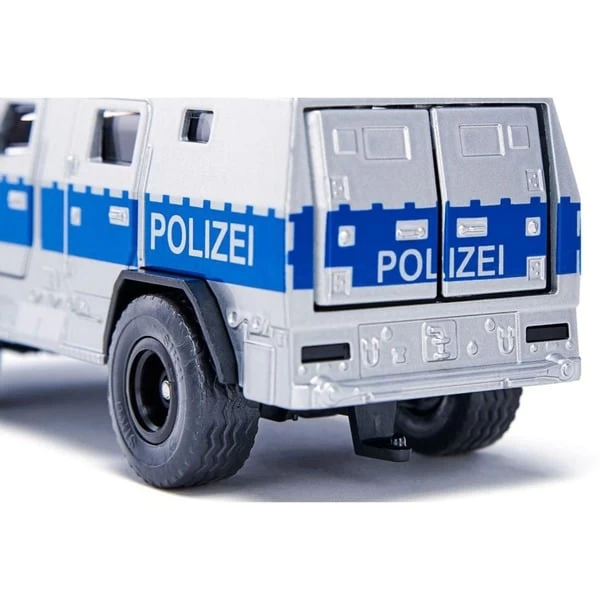 Der Name ist Programm. Der Rheinmetall Survivor R transportiert Spezialkräfte an den Einsatzort. Bis zu elf Personen finden in dem gepanzerten Fahrzeug auf Lkw-Basis mit Ausrüstung Platz. Die Insassen sind mit einer speziellen Belüftungsanlage gegen Kampfstoffe geschützt. Der nächste Einsatz steht an. Die Türen und die Heckklappe lassen sich öffnen.Art.-Nr.: 1729854