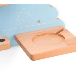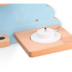 Das Tonie Regal „Auf der Traumwolke“ in der Farbe Himmelblau ist die perfekte Bühne für die Tonie-Sammlung. Dabei ist es viel mehr als ein dekoratives Wandregal: Es ist eine moderne Bibliothek, die entworfen wurde, um die Lieblings-Tonies, die Toniebox und ihre Ladestation unterzubringen. Auf der himmelblauen Wolke ruhen die liebsten Einschlafhilfen wohl behütet, bevor sie ihren Besitzer ins Träumeland begleiten. Süße Motive aus der Tonie-Welt machen den bezaubernden Blickfang zum einzigartigen Hingucker in jedem Kinderzimmer. Bis zu 20 Tonies stehen oder hängen sicher auf den magnetischen Holzflächen. Die Toniebox hat ihren eigenen Platz mit Öffnung und Vertiefung für ihre Ladestation. Das Regal lässt sich schnell und einfach an der Wand montieren, die passenden Schrauben und Dübel sind dabei.Art.-Nr.: 1918276