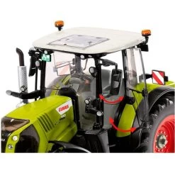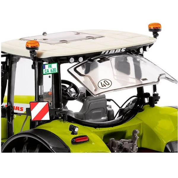 Eines der Flaggschiffe aus der Modellfahrzeug-Flotte von Wiking – hier im aktualisierten Design aber bewährter Detailqualität und mit tollen Funktionen. Das Modell eines Claas Arion 630 im Maßstab 1:32 ist handgefertigt und besteht aus Zinkdruckgussbauteilen und filigranen Kunststoffelementen. Die Fahrerkabine wurde mit einem miniaturisierten CEBIS-Bedienpanel ausgerüstet, zusätzlich erhielt das Kabinendach eine LED-Rundumleuchte. Klappbare Warntafeln und Blinker, Auspuff, Arbeitsleuchten und Spiegel in aktualisiertem Design runden den Look des Modells ab. Die Motorhaube kann geöffnet werden und gibt den Blick auf eine detaillierte Motordarstellung frei. Das Modell verfügt über bewegliche Ober- und Unterlenker, zu öffnende Fahrertür und Heckfenster und kann über das Lenkrad gesteuert werden.
